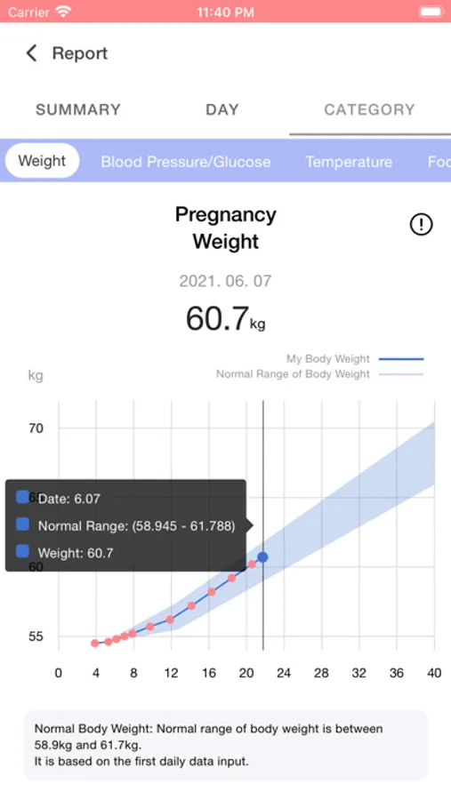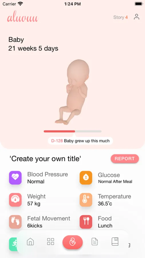 - Healthcare Support Items: Blood Pressure/Glucose, Body Weight, Body Temperature, Fetal Movement, Labor Pain, Food, Exercise, Menstruation