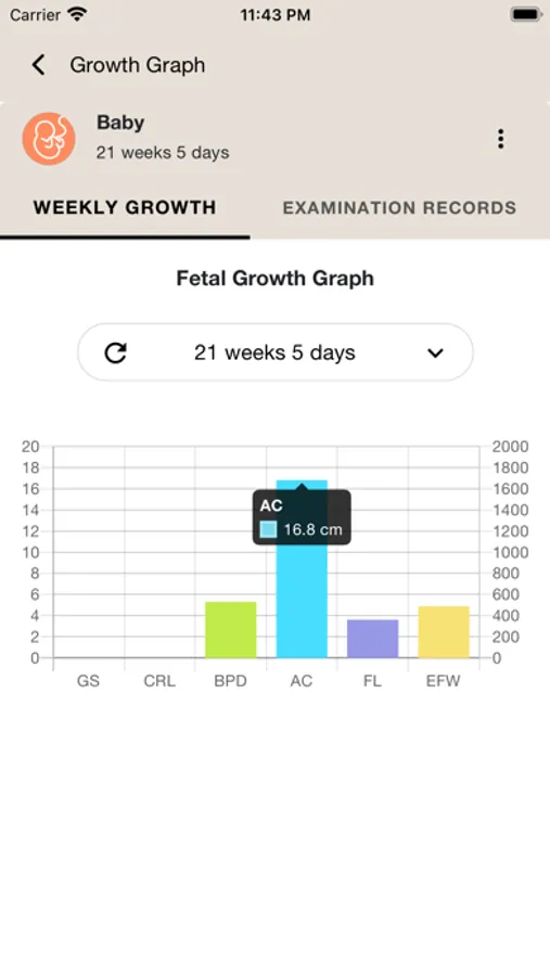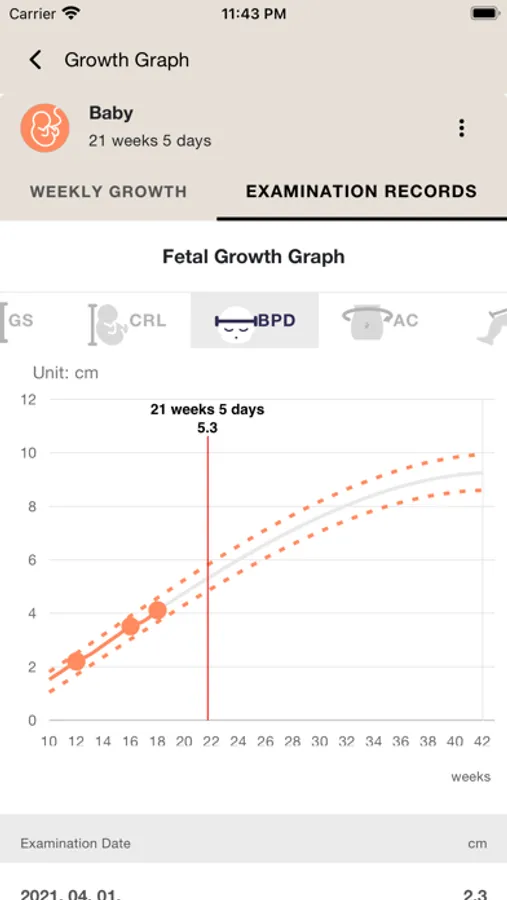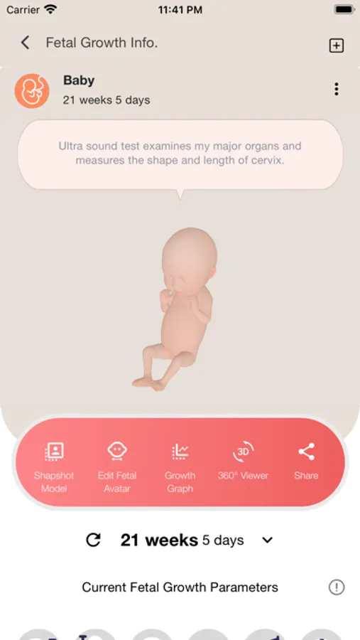 - Fetal growth information: fetus 3D models (4~40 weeks) and fetal growth graph provided