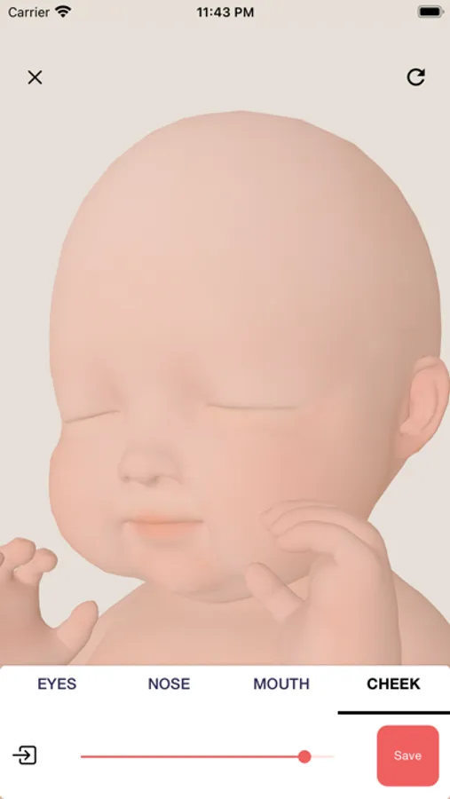 - Fetal 3D avatar model editing / recommendation: You can modify the fetal model after 17 weeks. When you register the fetus information, if you register an ultrasound image with a good fetal face by 3D ultrasound device in hospital, it will recommend and reflect the appearance. The input image is not necessary unless you are using recommendation.