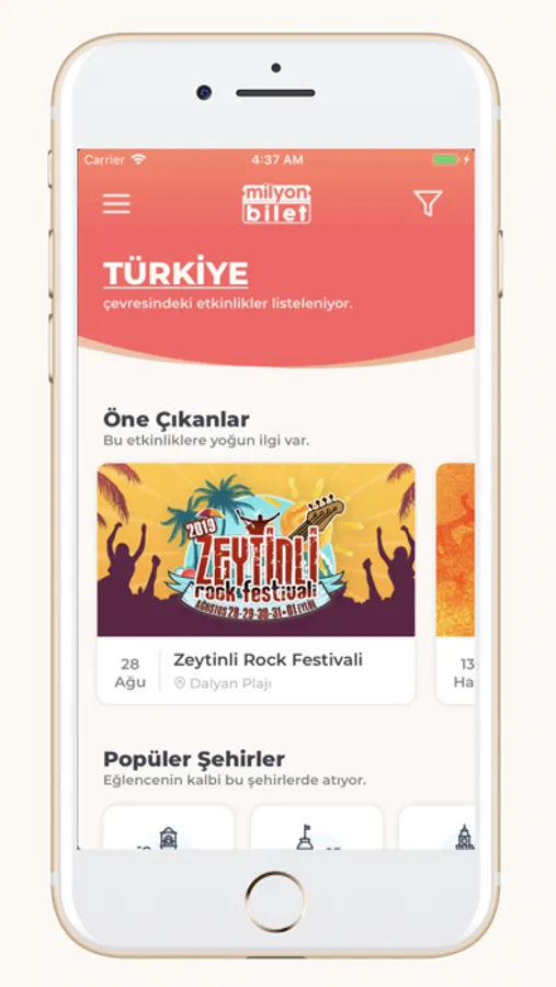 Milyon Yapım tarafından hazırlanan bu app sayesinde Türkiye'nin her yerindeki etkinlikleri takip edebilir, en uygun fiyata bilet alabilir hatta arkadaşlarınıza bilet hediye edebilirsiniz.