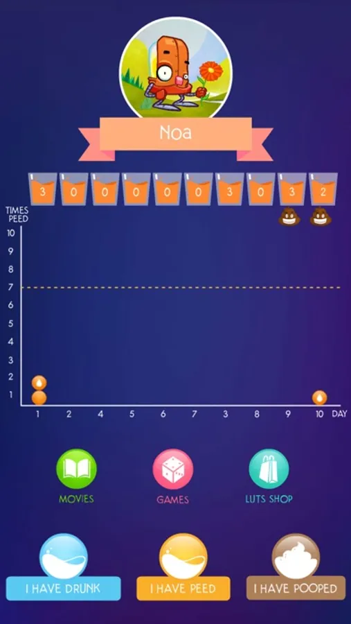 And if you keep track of your wee and drink behavior, you earn even more coins .