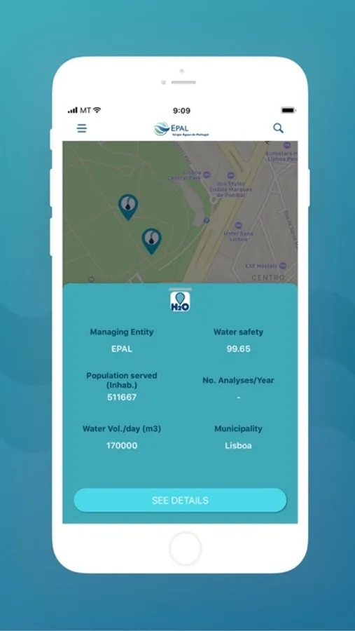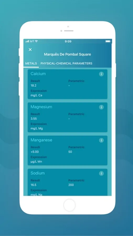 At any time, wherever you are, you can access H2O Quality and see the water quality being distributed at that specific location, with information on various parameters, namely calcium, magnesium, chlorine, colour, hardness and pH, amongst others, which you can refer to in detail by viewing results and parametric values.