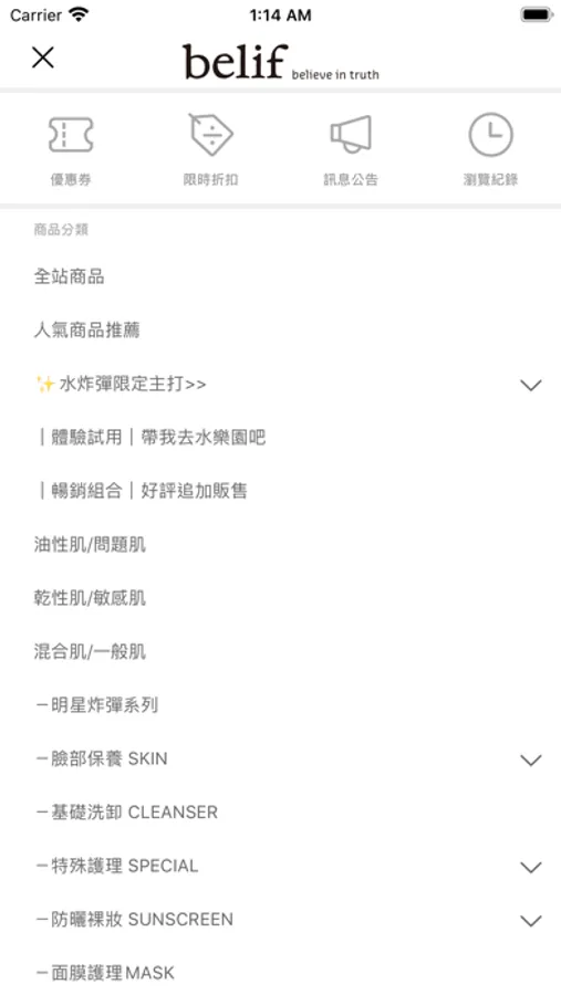 belif 草本保養 官方APP不定時推出限定優惠!APP會自動推播訊息,讓你不再錯過任何好康活動。belif's『五個真實』-真實原料、真誠配方、真正安心、真正有益、真實永恆。承繼英國150年天然保養傳統,秉持真實無欺的保養精神,使用卓越的成份,讓肌膚越來越好,這就是belif!