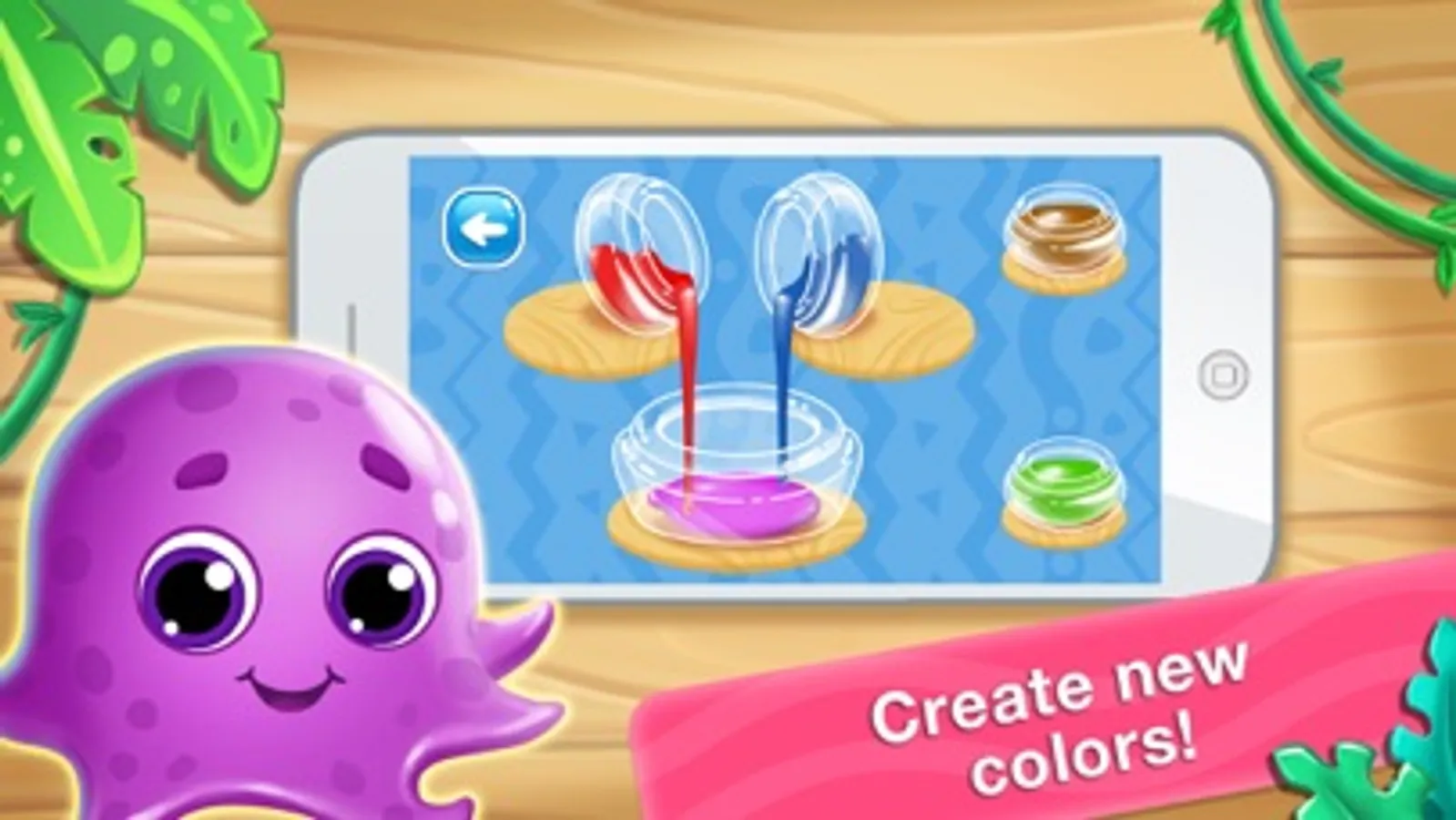 - Open the third door and find the opportunity to become a young artist! Kids will learn mixing colors and getting new ones!