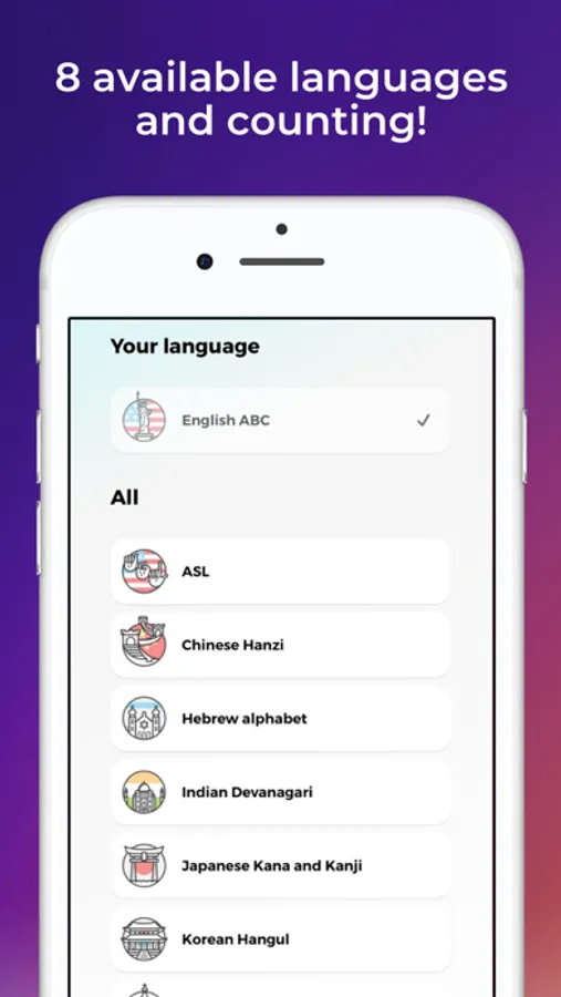 Drops Scripts offer a complete package for free for casual learners: 5 minutes of blazingly fast and epic fun learning per day with more than 3 writing systems. More dedicated language learners can subscribe for premium features to achieve faster progress and unlimited learning time.