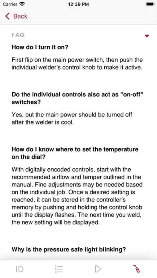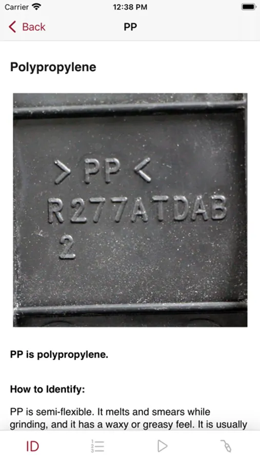 This app helps you identify and repair plastics. There are four main sections of the app: Plastics Identification, Standard Operating Procedures, Videos, and Welder Companion.