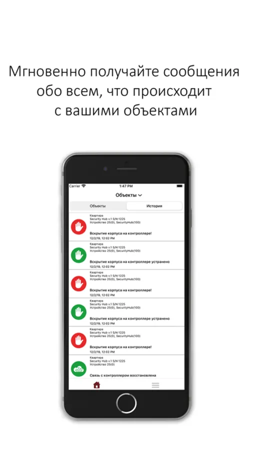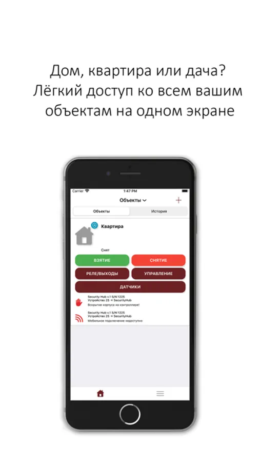 Приложение для IOS-устройств обеспечивает постоянный контроль охраняемого помещения. Вы дома, даже, когда не дома.