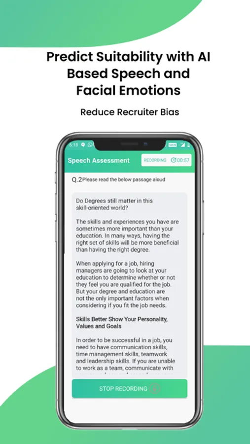 The app uses an AI-based algorithm to grade & assess any applicant on four key areas