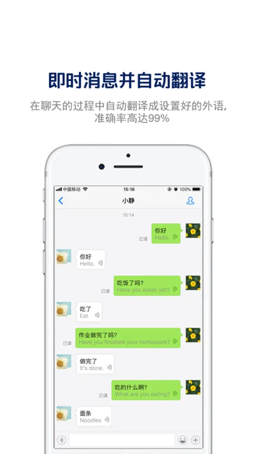 在聊天的过程中自动翻译成设置好的外语,准确率高达99%