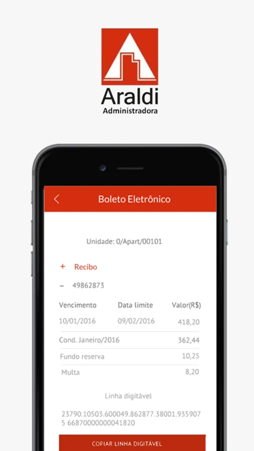 Seja para pegar a 2ª via do boleto, consultar seu histórico de pagamentos ou visualizar a última ata da assembleia, o app da Araldi estará ao seu lado para facilitar o seu dia a dia.