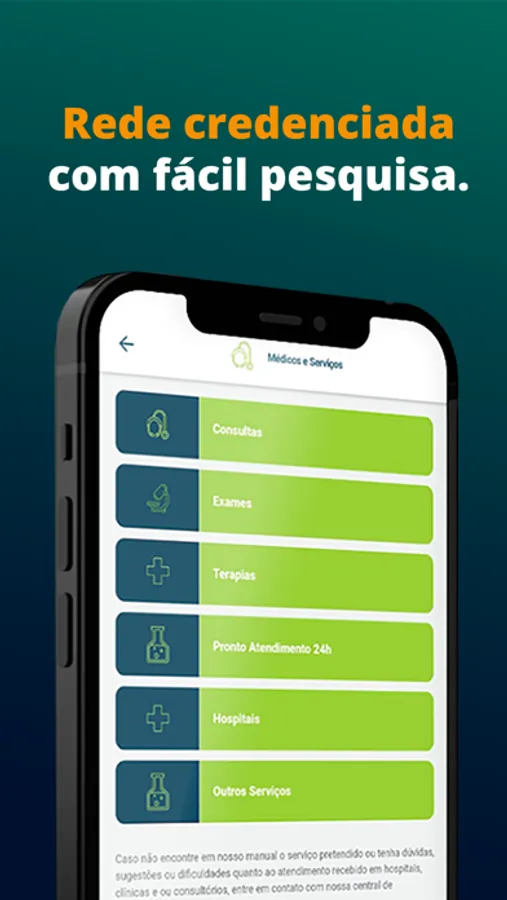 A busca da rede de atendimento pode ser feita pela localização do beneficiário, tipo de prestador, especialidade, tipo de plano ou pelo nome do profissional ou estabelecimento de saúde. Tudo isso com uma interface simples e amigável. O aplicativo aponta o caminho mais próximo entre o beneficiário e o prestador que ele procura, utilizando o sistema de geolocalização do aparelho. Com apenas um toque o prestador ou estabelecimento pode ser incluído na lista de favoritos. Periodicamente acesse a área de notícias e mantenha-se informado sobre o plano de saúde.