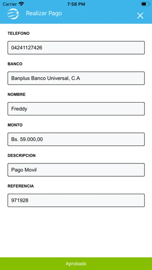 3. Ingresa los datos del beneficiario*: número de teléfono, banco, monto y descripción de la operación.