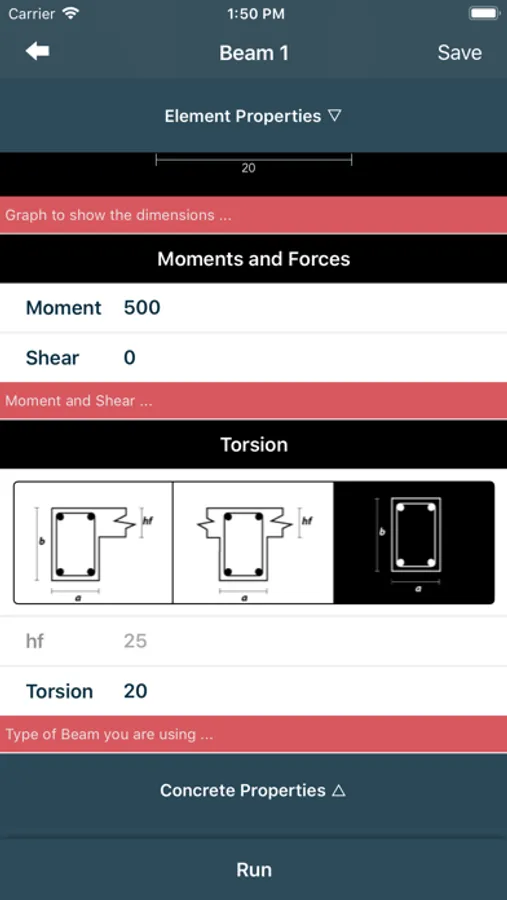 Applied moment and forces: Bending moment, Shear and Torsion.