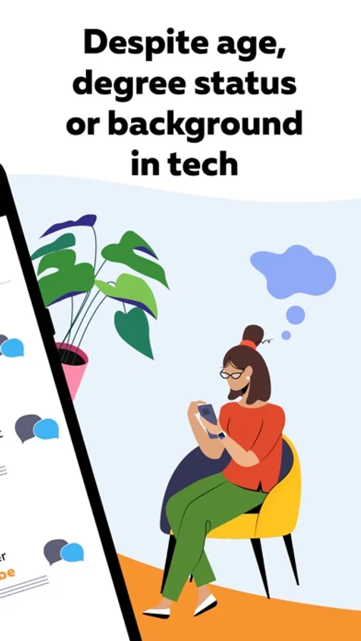 In our app, you will meet people who are just starting out and people who are several stages ahead of you. No prior experience is needed. We will send you a free coding course to get started.