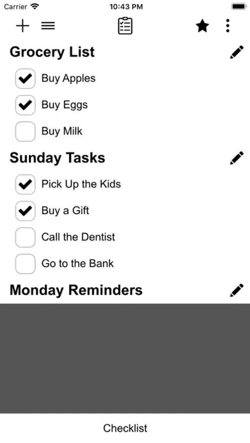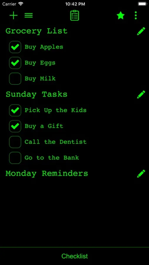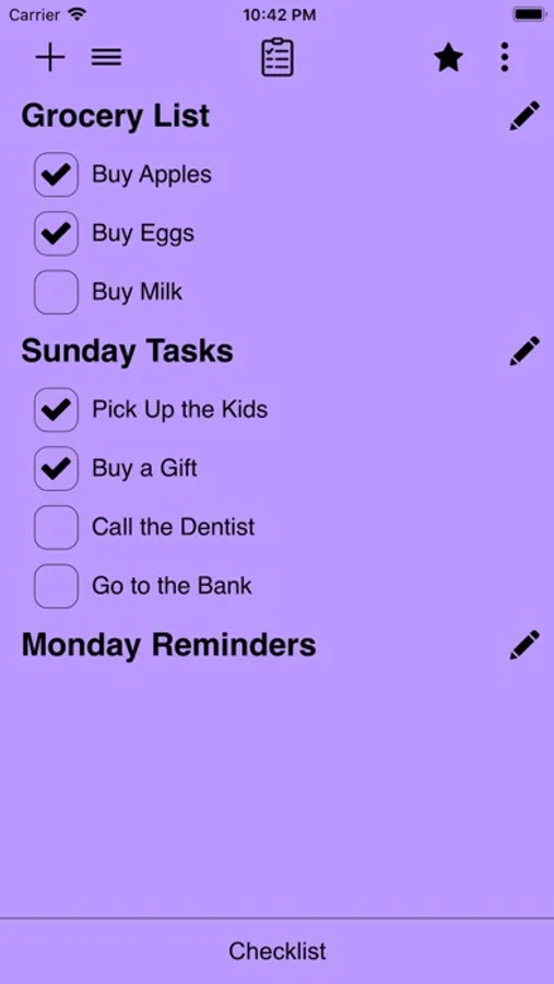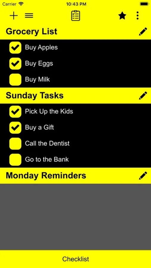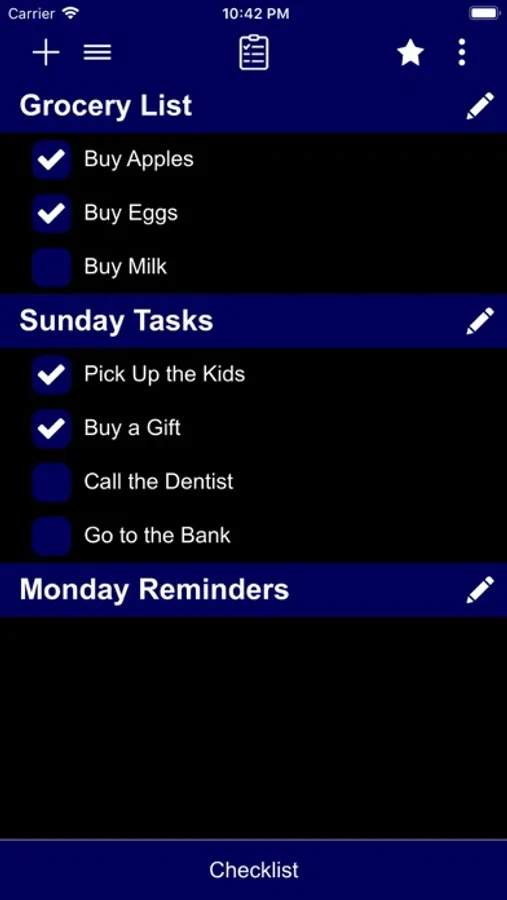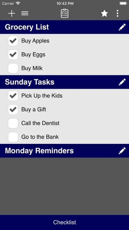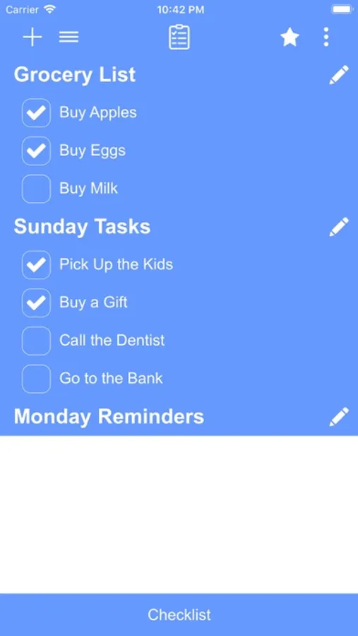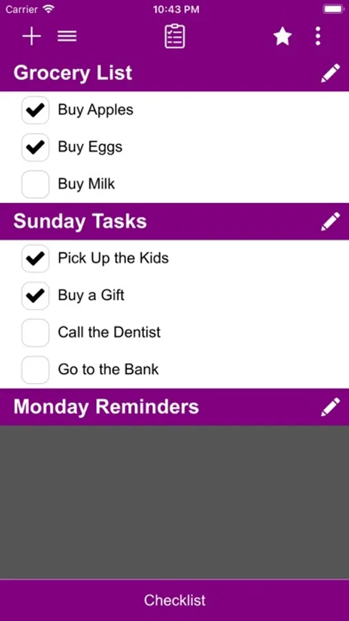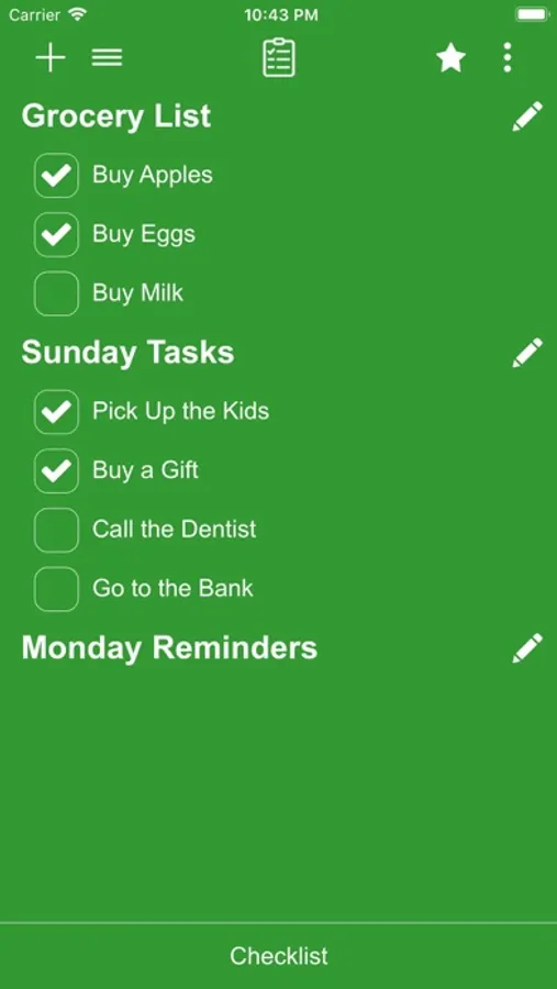 Checklist app is a to-do list, task list, must have list, achievements list, and so on...