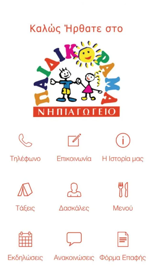 Καλώς ήρθατε στην εφαρμογή του Νηπιαγωγείου "Παιδικόραμα". Μέσω της εφαρμογής θα μπορούν οι γονείς, μέσω των κινητών τους, να ενημερώνονται με μεγάλη ευκολία και οποιαδήποτε στιγμή το επιθυμούν, σχετικά με την Τάξη των παιδιών τους και γενικά για τα νέα του Νηπιαγωγείου μας.