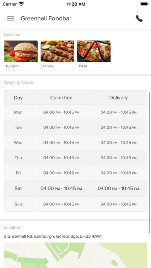 Thank you for visiting Greenhall Foodbar in Gorebridge, Edinburgh. We hope you enjoy our online ordering app and your food.
