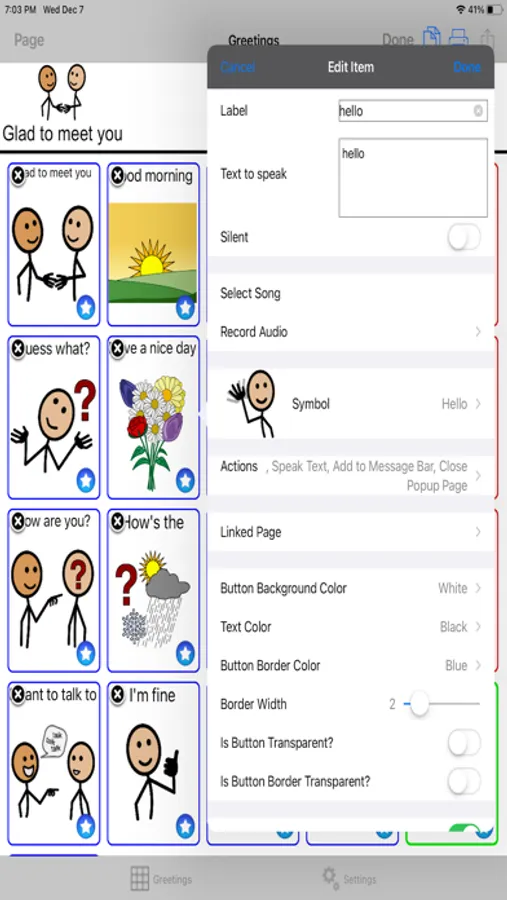 • Choose from over 30,000 SymbolStix™ symbols (worlds largest AAC library), or take photos with the camera, use photos from your album, or add Google images to your buttons