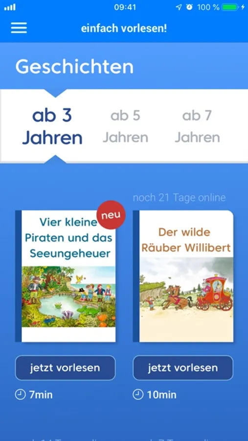 Egal, ob im Wartezimmer, im Urlaub oder als Gute-Nacht-Ritual – mit der „einfach vorlesen!“-App hast du immer eine Auswahl an Geschichten für Kinder ab 3 Jahren, ab 5 Jahren und ab 7 Jahren auf deinem Smartphone dabei.