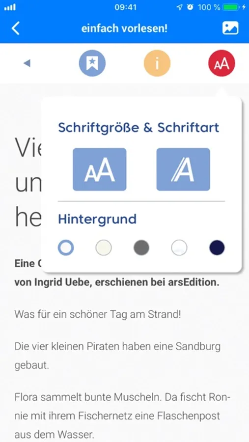 Wir möchten dazu beitragen, dass ihr viele schöne und entspannte Vorlese-Momente verbringen könnt. Damit der Vorlese-Spaß nicht durch Werbung gestört wird, verzichten wir bei unserer App „einfach vorlesen!“ ganz bewusst auf Werbeeinblendungen oder In-App-Käufe.