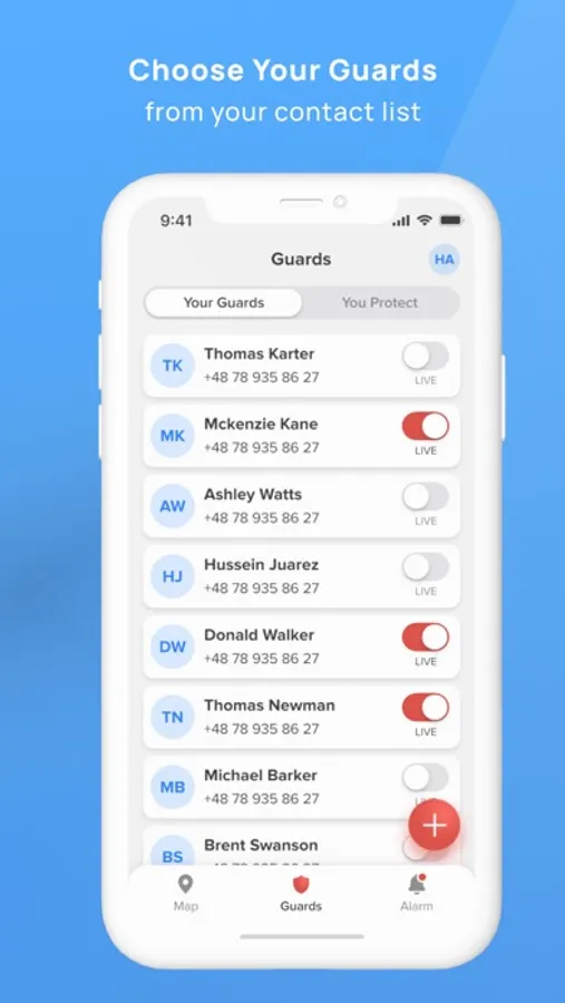 If you switch on the live location, your selected friends and family members can record your whereabouts in real time. Live location can be turned off for more privacy, allowing your chosen protectors to only track your location when you've raised an alarm.