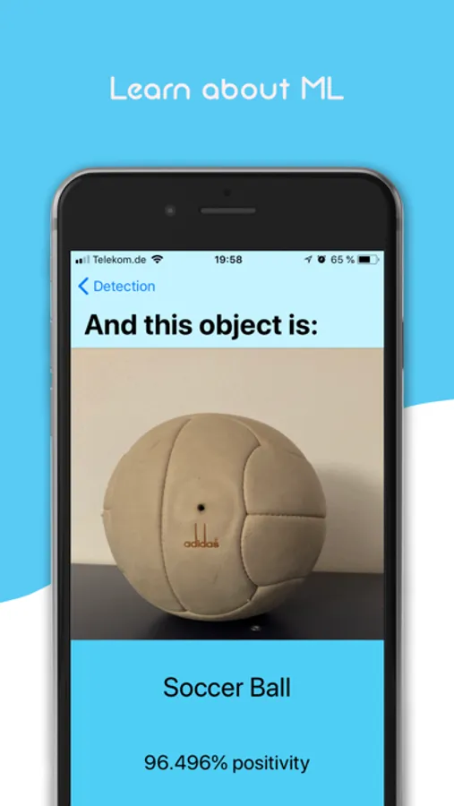 - detect anything you want: Take or choose a photo and Scale it tells you what it is (For demonstrating MachineLearning)!