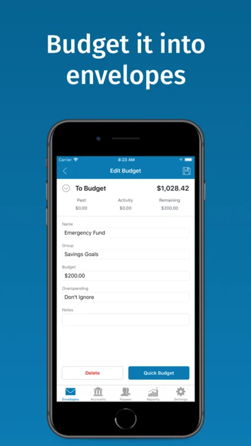 • Envelope style budgeting - uses a proven method to reduce debt and help you manage your personal expenses