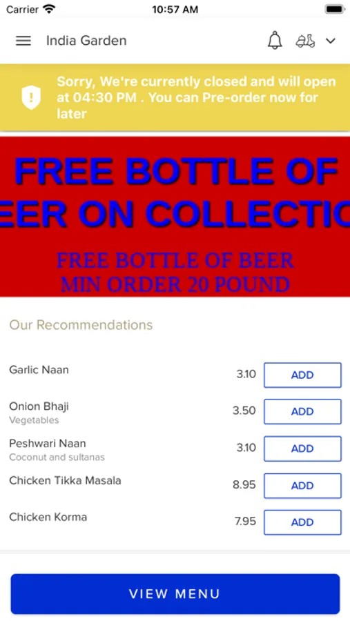 We offer a world of flavours and spices, which all comes together to create a dining experience that will transport you to another world. Our chef prepares all of our authentic dishes completely fresh, we also offer a wide range of authentic Indian cuisine to suit anyone's tastes. We have a new online ordering app which displays our entire menu - so please feel free to browse, find your favourite or try something new, and enjoy our restaurant quality meals in the comfort of your own home.