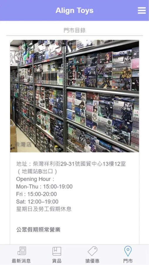 Align Toys Mobile 是雅利模型玩具為手機用戶推出的手機購物軟件,具有商品搜索、瀏覽、選購、收藏、訂單查詢等功能,為客戶提供方便、快捷的購物體驗。登記成為Align Toys 會員,透過手機App 消費及各項活動賺取積分,當積分達到指定數目更可獲得購物禮券;成為會員更可率先得悉最新推廣及情報。請即下載應用程式,加入成為Align Toys會員。