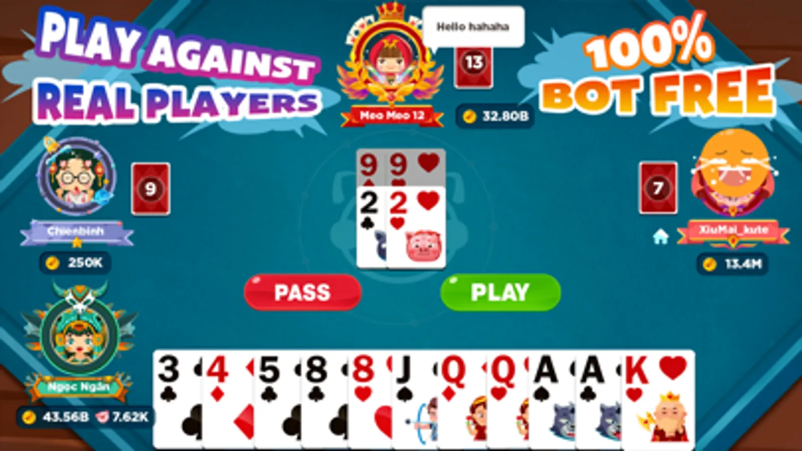Tien Len Mien Nam (TLMN) / Thirteen is a timeless classic that has been played by many generations and is very popular among poker game lovers. If you love strategy card games that require skill to master, then this game is for you! It's easy to learn, and very fun to play!