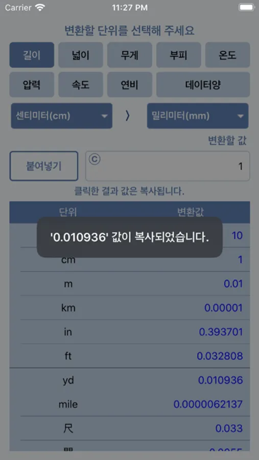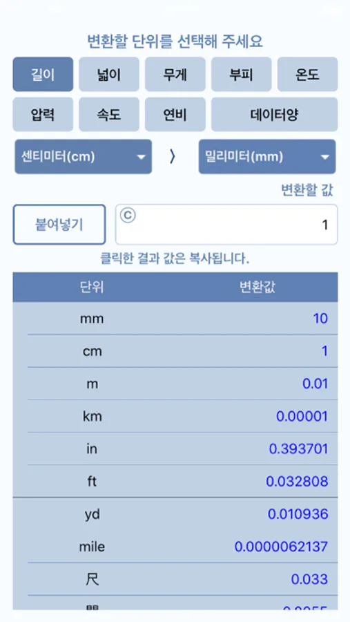 변환된 값을 선택하면 복사가 되어 바로 사용할 수 있습니다.