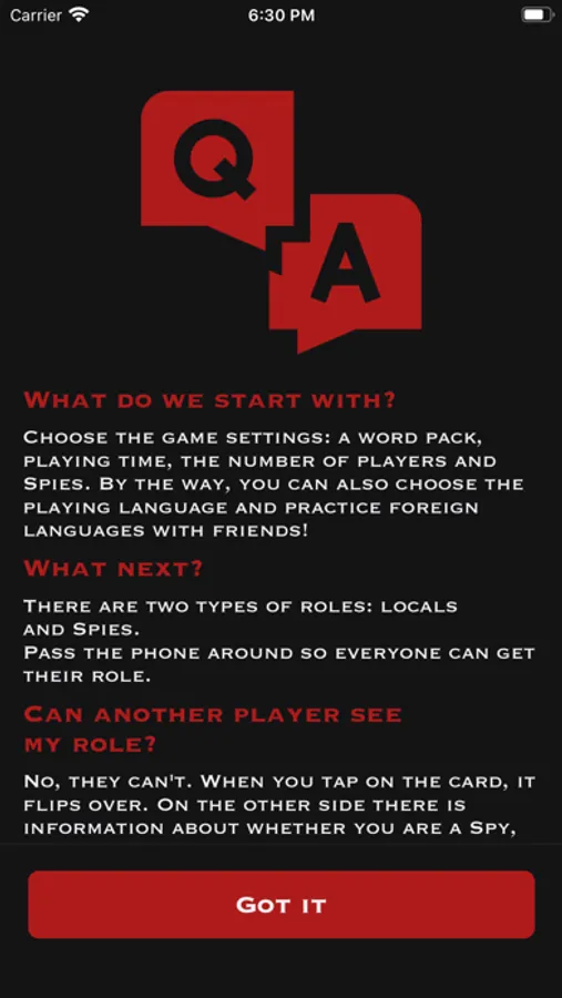 Spy is a party game where you are find yourself in a random location and try to act according to your role. Or perhaps you are the spy? Try to find out everyone's secret!