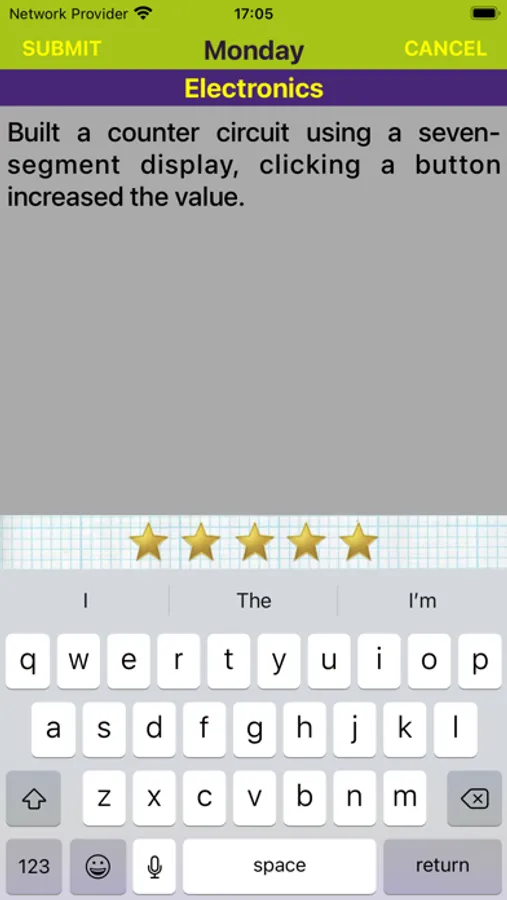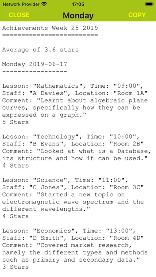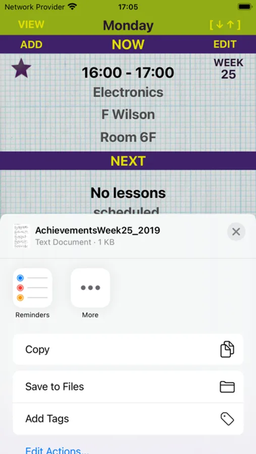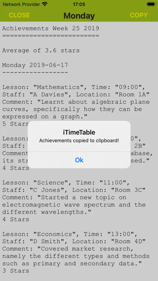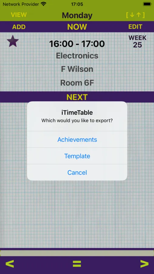 iTimeTable is a simple app that displays the current and following lesson, while still allowing the user to navigate through day-to-day studies. An achievement summary and star rating can be added to each lesson, then viewed or exported as a weekly compilation.