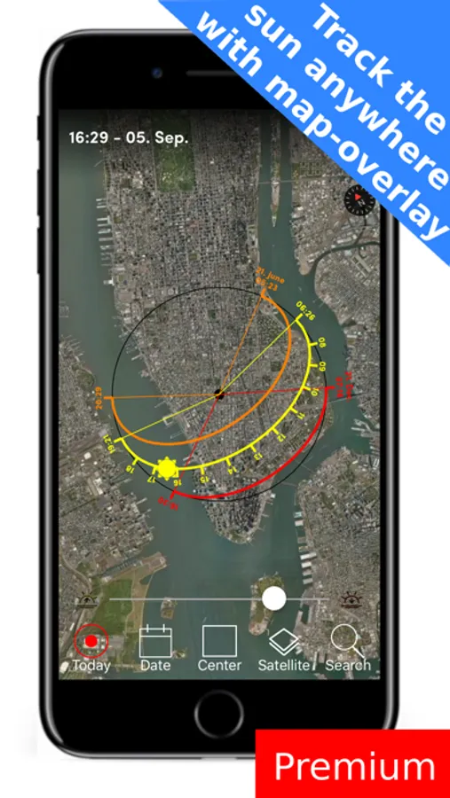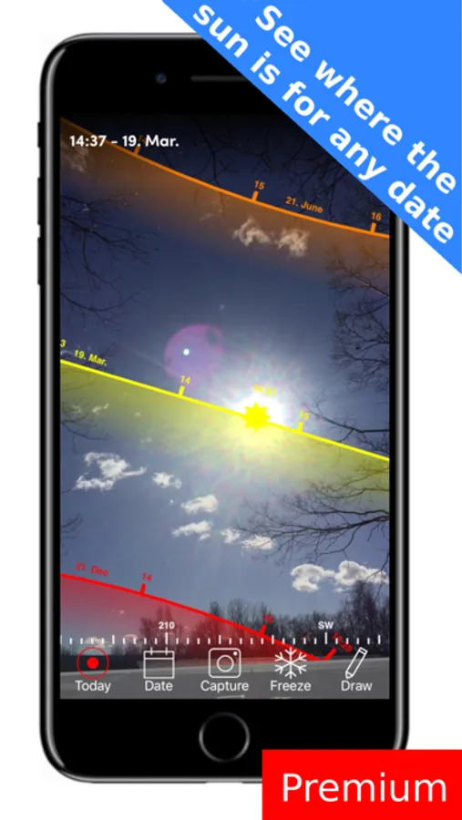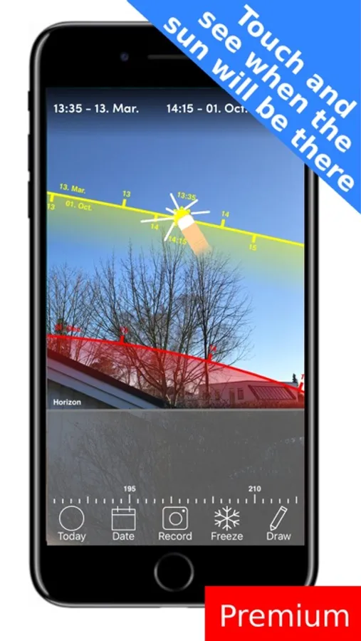 - point at the screen and SunApp will show the date and time, the sun will be in that position