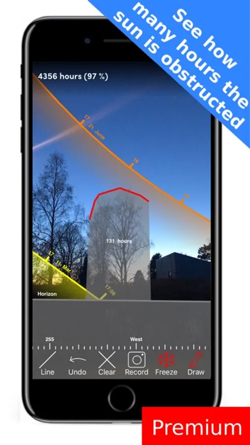 - mask out obstructions to the sun and find out how many sun hours or sun energy (kWh/m2) that will be hidden behind the obstruction during the year