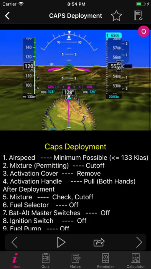 On the back are the EMERGENCY procedures with the subject headings highlighted in red; No time lost reading excessive wording or critical time lost searching through a flip book for the correct procedure …. just concise, logical data that is INSTANTLY available. Again, you will notice our procedures are complete.