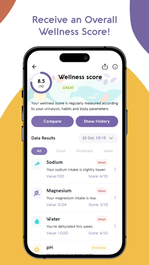 *After taking a test, the Vivoo App scores you on your overall wellness and provides detailed feedback on each parameter.