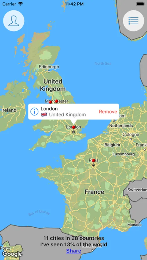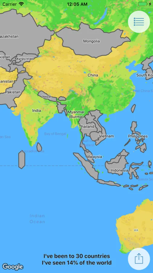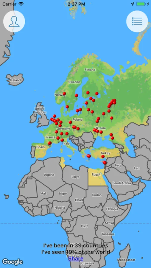 Share your statistics with friends in one second and you'll get praise and admiration. Or, save the statistics for yourself to keep track of your progress in conquering the whole list of countries!