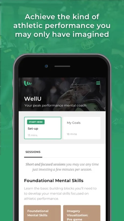 WellU mental training is a resource in your pocket always available exactly when athletes need it. Designed by combining tried and true techniques with the latest sports psychology research and training, WellU will continue to evolve to provide the tools needed to reach and sustain peak performance.
