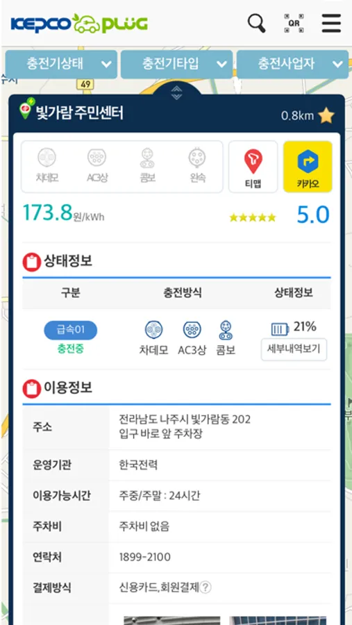 - 충전소 길찾기(TMAP, 카카오내비 연동)