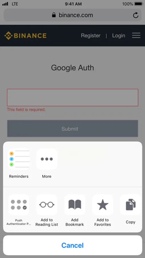 * action extension : Select share from your favorite web browser, and copy the matching verification code to the clipboard. Your login is one paste away.