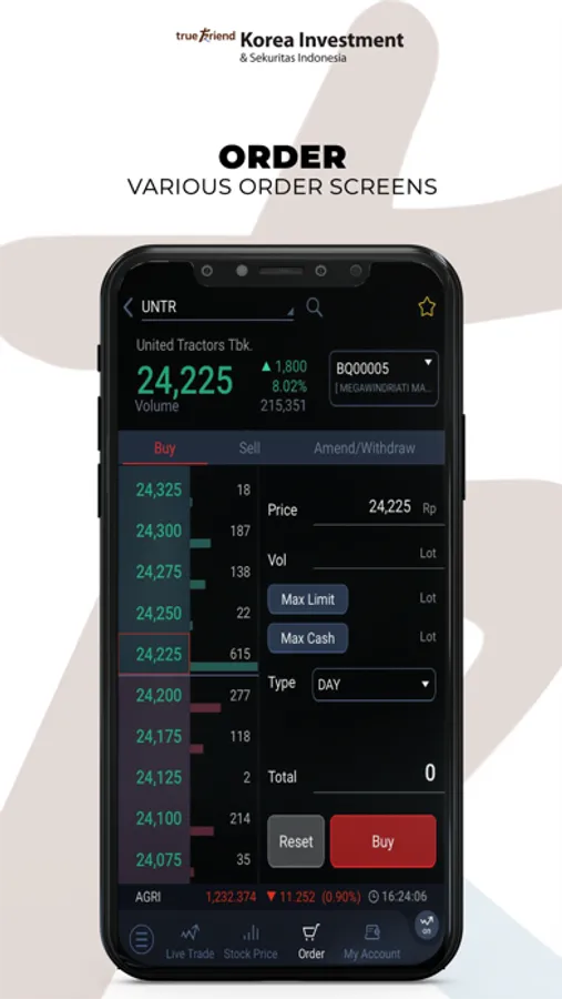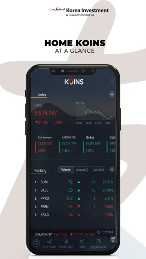 KOINS offers real-time and the most cutting-edge trading system such conditional order placement and execution push (pop-up) service, and in-depth quote data such as advanced search/charts/foreign indices/FX.