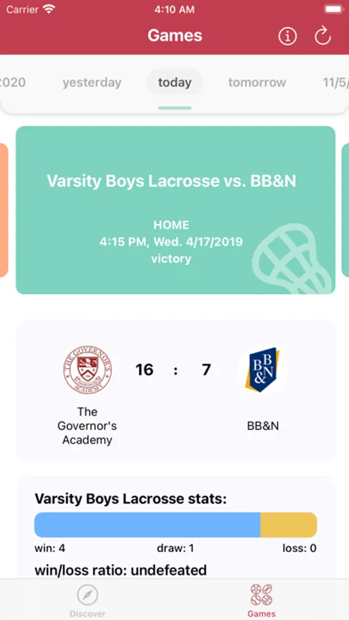 Govs Connect is an application designed for the Governor's Academy, a private high school located in Massachusetts. Under the "post" section, clubs at the Governor's Academy can easily share their activities with the entire school. Also, all announcements, no matter it's from the head of the academy or a student, can be instantly delivered to the community. It's also a platform for students to ask questions. Other information is available as well. Govs Connect provides a more convenient way for students and faculty to get the information they need. Under the "discover" section, weekend events, dining hall menus, and other variety of data are easily accessible with a single tap. Join the community by downloading Govs Connect and log in with your school credentials. You may also log in with an access code provided by the administrator.