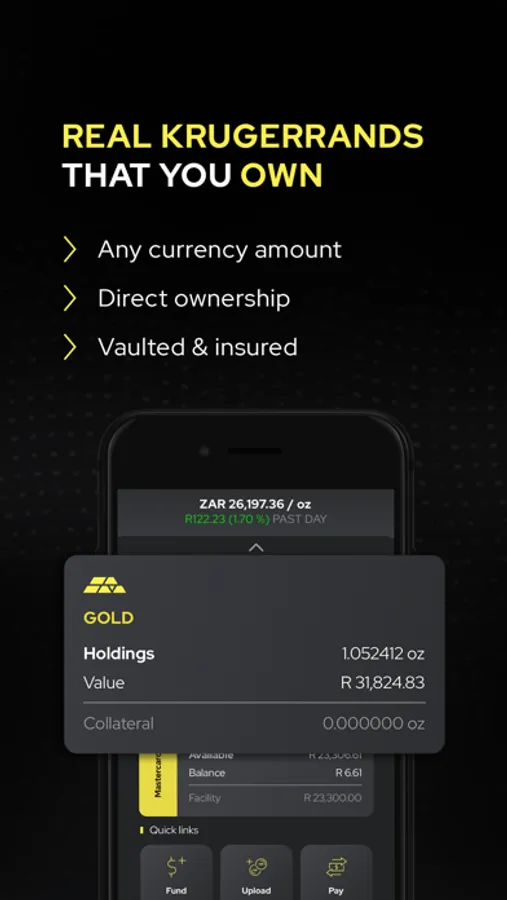 A Troygold account allows you to store your wealth in real gold bullion Krugerrands, with the freedom to access a flexible, low-interest credit facility against your gold’s value.