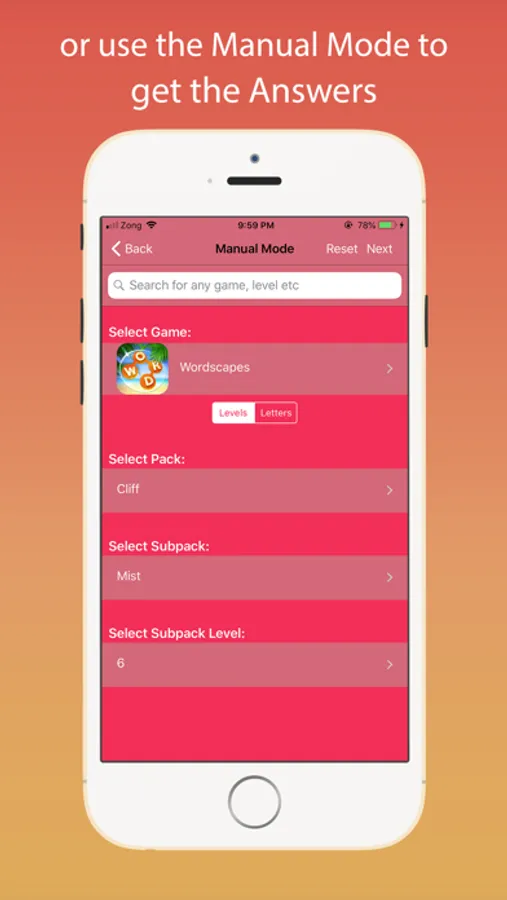 Or just use the “Manual Mode” to get answers based on levels or letters information.