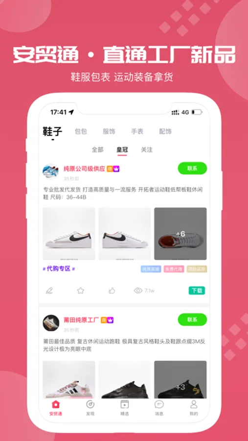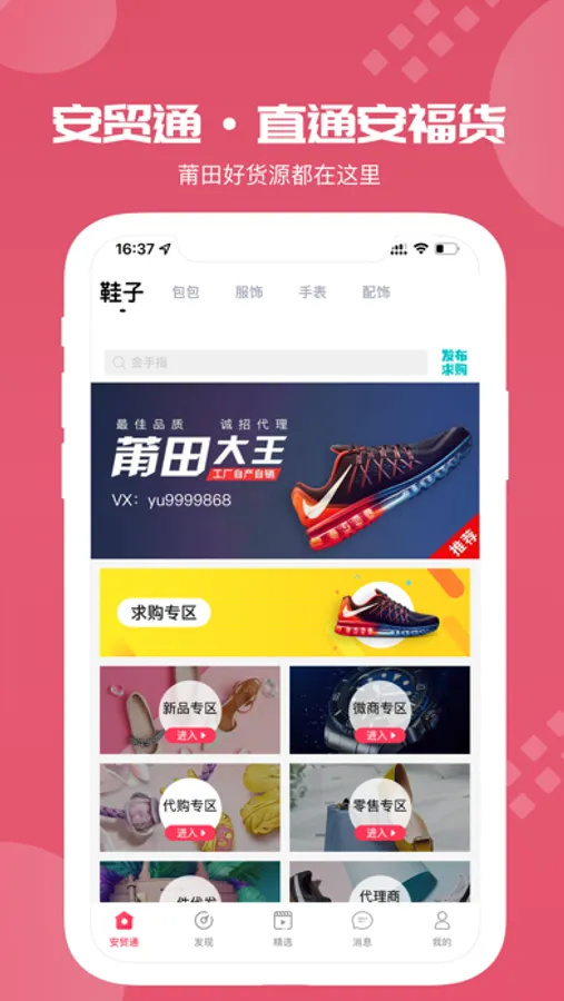 安贸通,莆田鞋货源广受海内外用户好评,主流的货源发布与搜索平台。产品直通莆田、广州、义乌、越南、台湾等货源地厂商,让用户快速找到一手货源,轻松省钱。安贸通与数千个平台实现流量互通,确保货源新鲜和客源不断。此外,安贸通具有供求信息发布、搜索、评论、关注,快速转发朋友圈等功能,为您打造便捷的货源索取和电商营销体验。