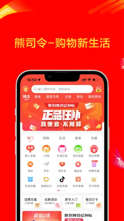 熊司令是一款集淘宝、天猫、京东、拼多多等数十家主流电商平台为一体的商品分享 APP,可以第一时间获取全网最新优惠券、促销活动和热卖爆款等商品信息,是购物新分享时代不可少的省钱好助手。