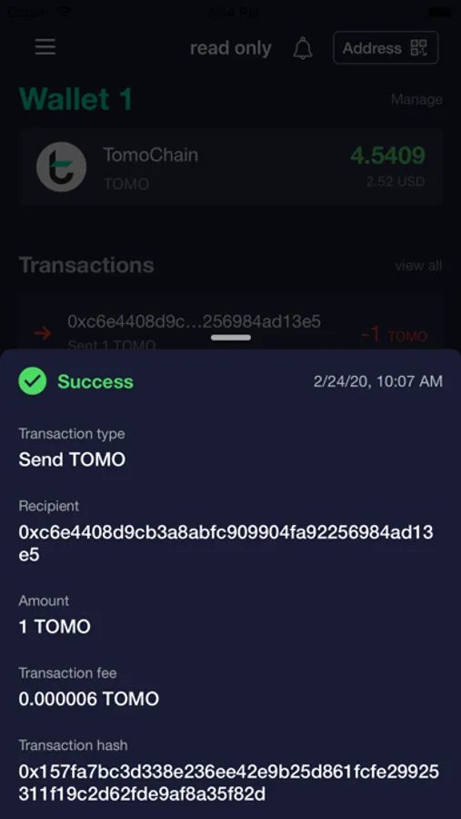 - Easily and rapidly send/receive TOMO and other TomoChain tokens