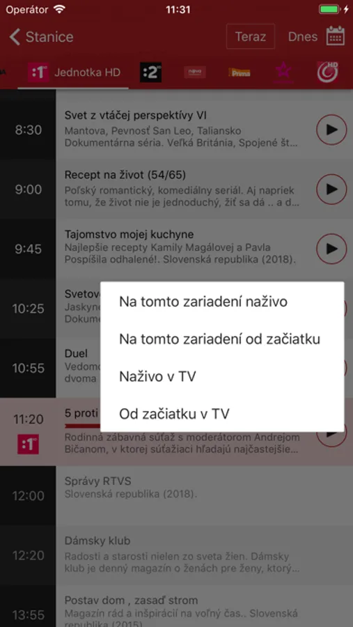 Prezrite si v pohodlí TV program na svojom mobilnom zariadení, vyhľadajte si a označte zaujímavé relácie alebo si spustite prehrávanie relácie z mobilu priamo na svojom TV.