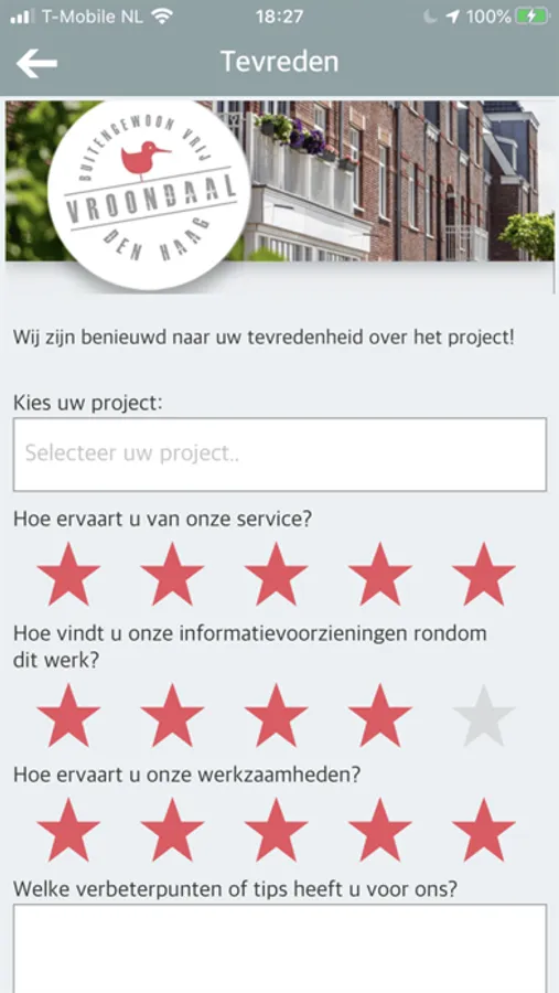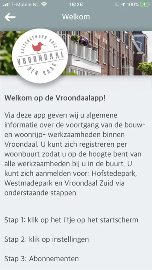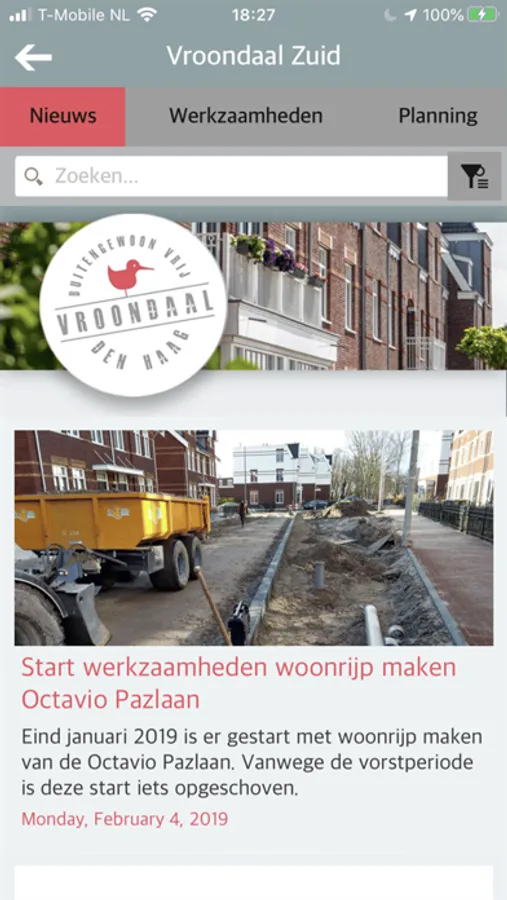 In deze app vindt u alle informatie over de werkzaamheden in Hofstedepark, Westmadepark en Vroondaal-Zuid te Vroondaal. Deze werkzaamheden bestaan uit het onderhoud aan de wegen en groen. In de app vindt u updates over de voortgang van de werkzaamheden en wordt er informatie over de projecten weergegeven. Ook kunt u op deze app vragen, opmerkingen of klachten achterlaten die betrekking hebben op het project.